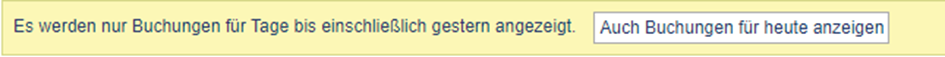 Im linken Bereich erhalten Sie eine Auflistung der Vorgänge, zu denen noch ungenehmigte Buchungen existieren. Wählen Sie einen Vorgang aus und Sie sehen im rechten Bereich die entsprechenden Buchungen bis einschließlich gestern. Sofern auch Buchungen vom aktuellen Tag angezeigt werden sollen, klicken Sie auf folgende Schaltfläche:
