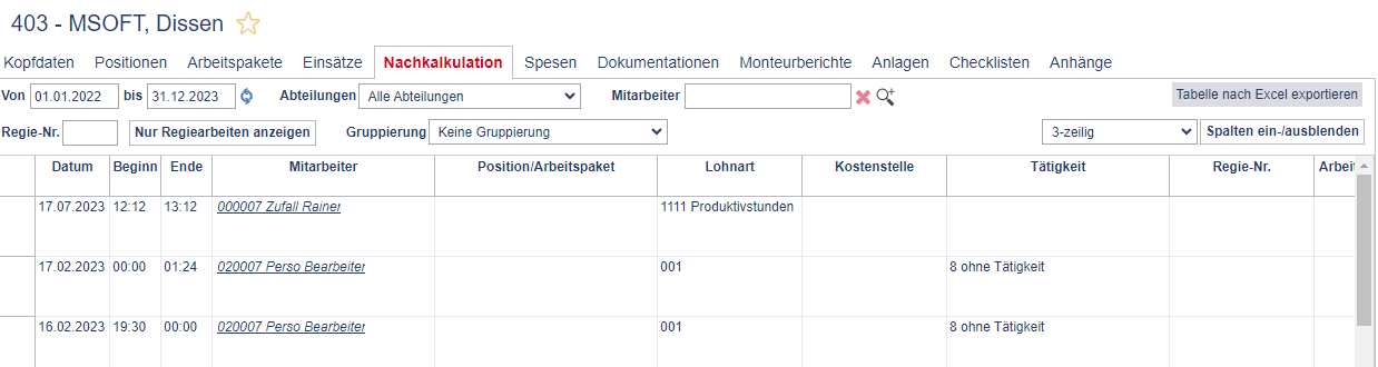 Nachkalkulation in TIME4