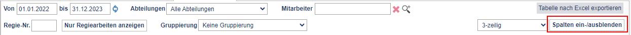 Darüber hinaus bietet TIME4 die Flexibilität, die Anzeige der Spalten individuell anzupassen und zu erweitern, um die Übersichtlichkeit und Benutzerfreundlichkeit zu maximieren.