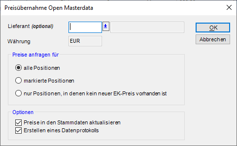 Unter „Einkaufspreise erfassen“ stehen als Aktualisierungsquelle nun auch OMD-Lieferanten und Preise aus deren Webshops zur Verfügung.