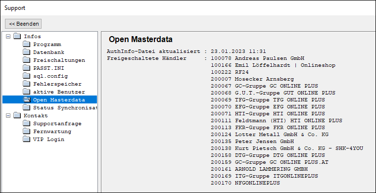 Unter Hilfe-Info für den Support im Menüband können Sie prüfen welche Großhändler aktuell unterstützt werden.