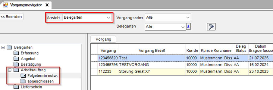 - Ansicht nach Belegarten auswählen [PASST.prime: Modul Vorgangsverwaltung: Vorgangsübersicht]
