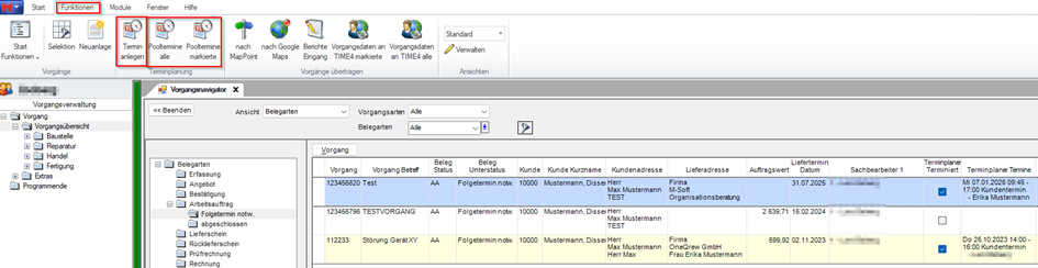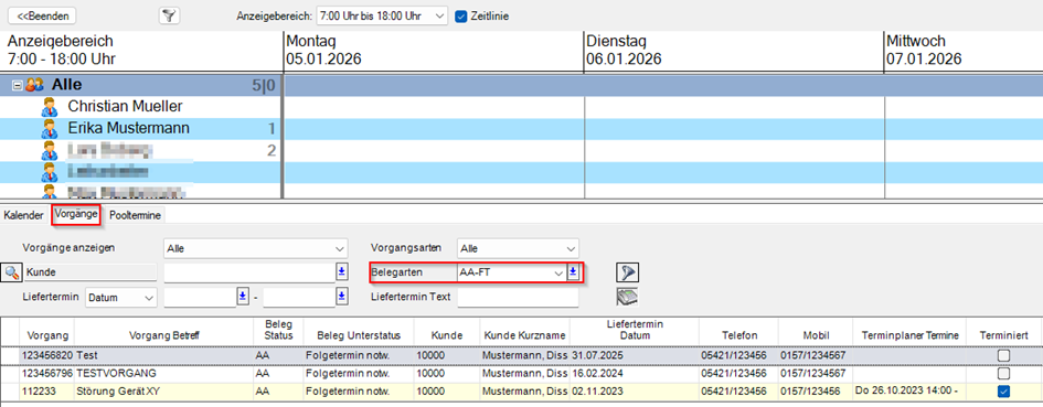 Variante 2: Selektion Vorgänge im Terminplaner